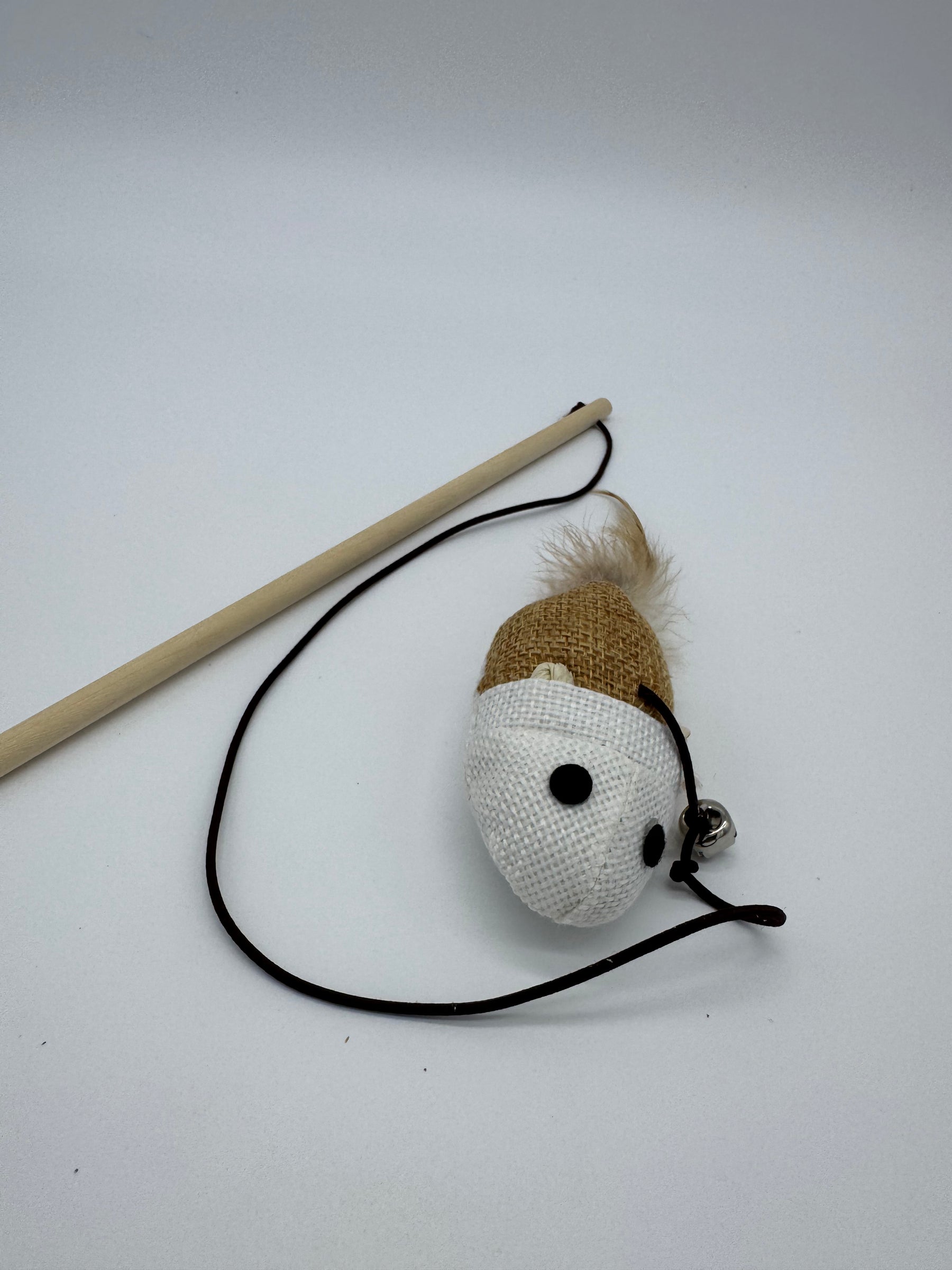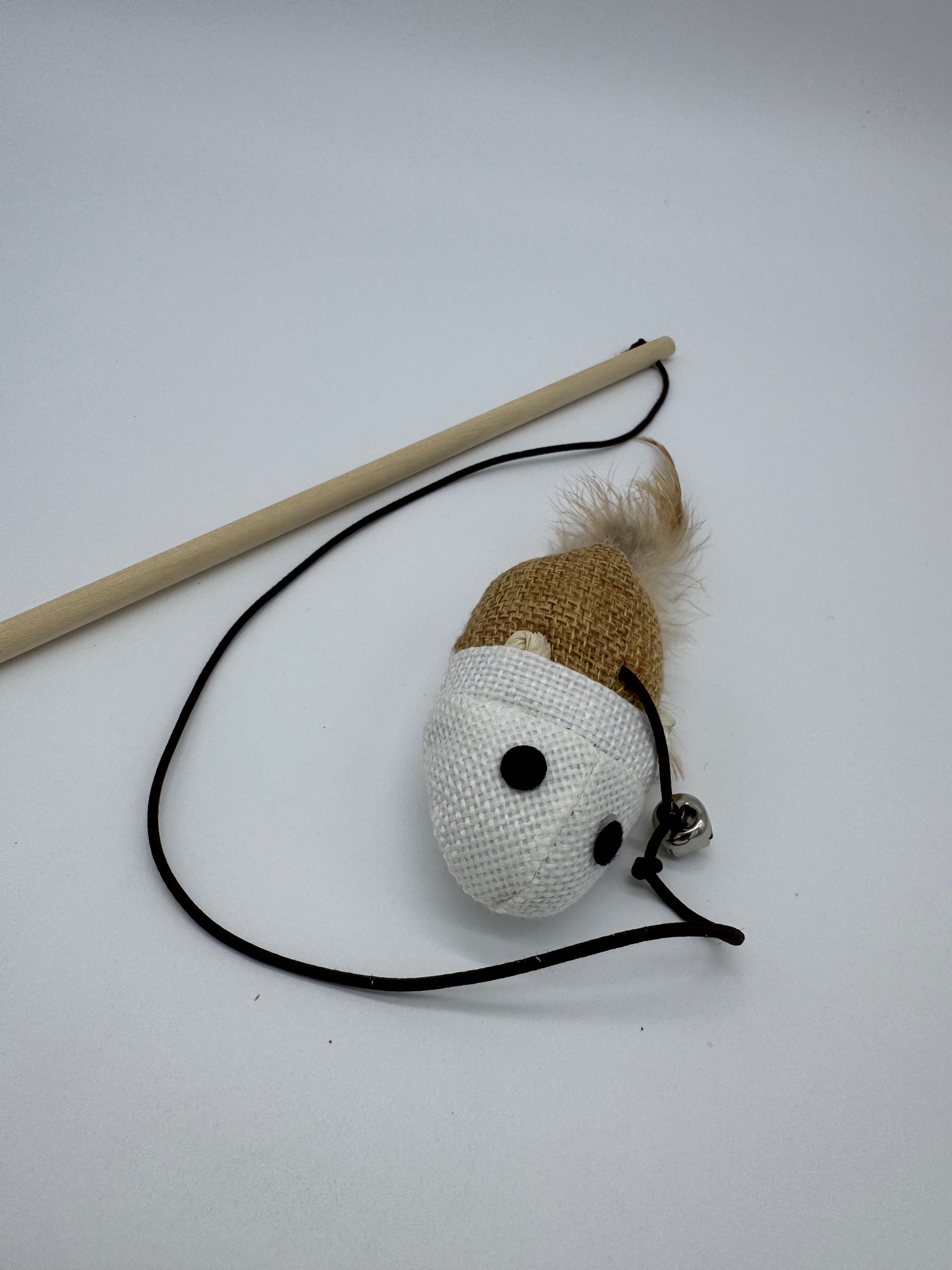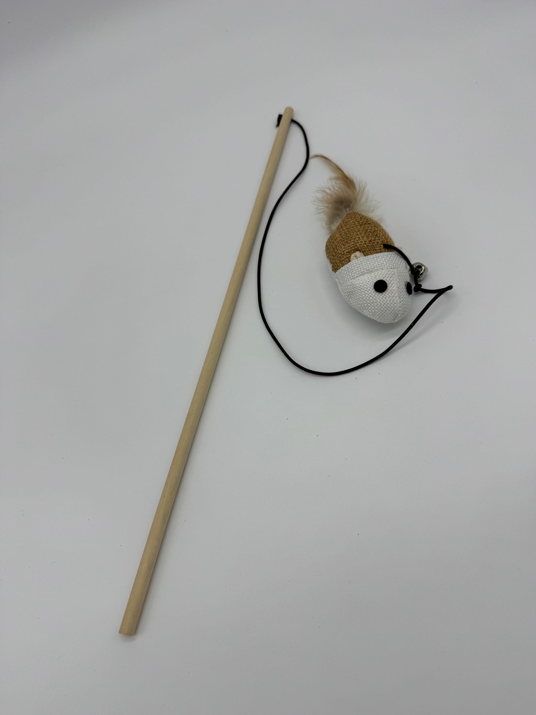 Tenez la baguette souple et laissez la petite souris en laine se balancer au bout du fil : votre chat va bondir, sauter, attraper et mordre — un pur bonheur à regarder ! 😻