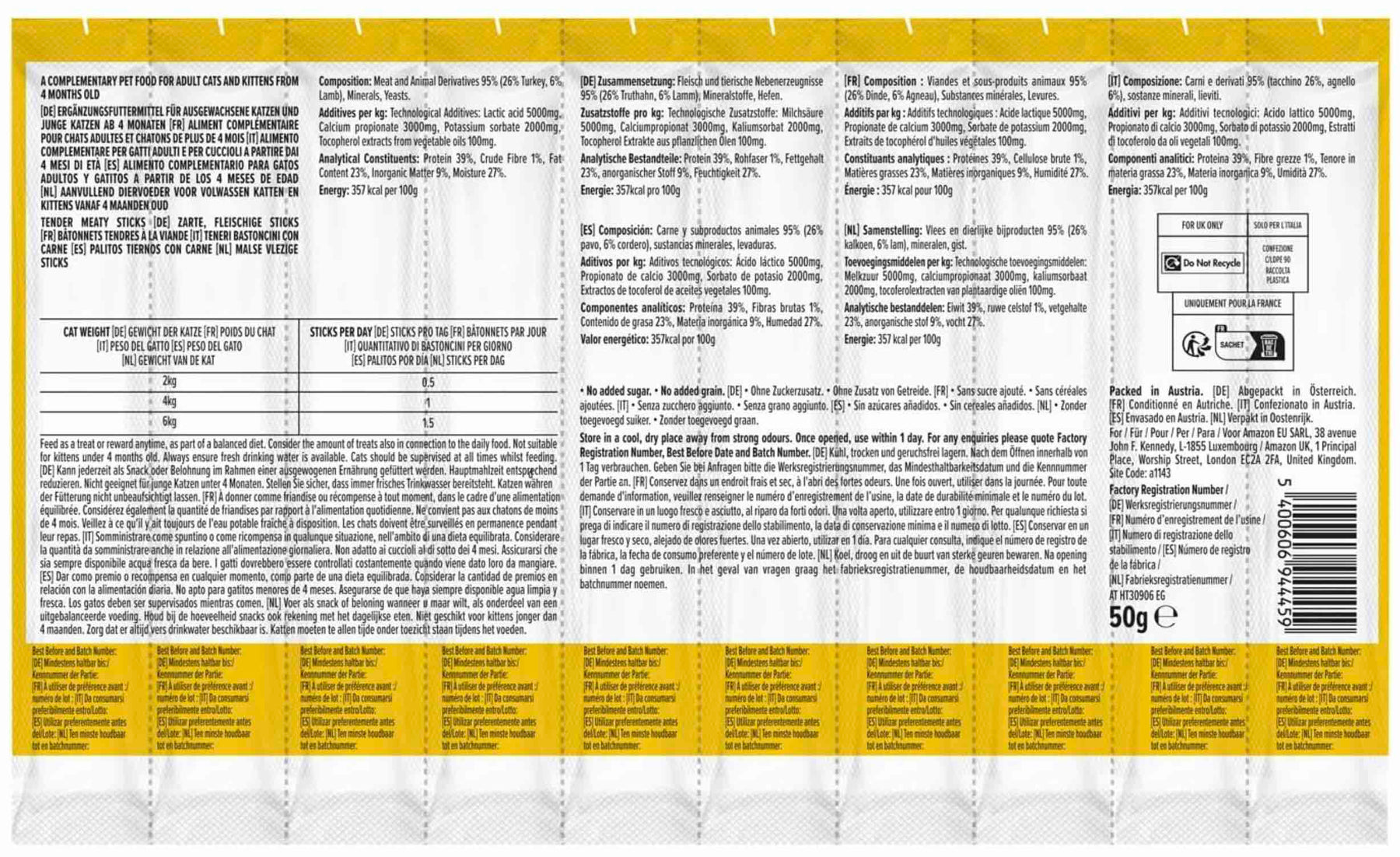 Grâce à la combinaison savoureuse de dinde tendre et d’agneau riche en nutriments, ces snacks apportent une haute appétence tout en respectant les besoins naturels du chat. Leur forme facile à mâcher stimule le plaisir alimentaire, renforce la complicité et peut être utilisée comme récompense quotidienne ou comme petit snack entre les repas.