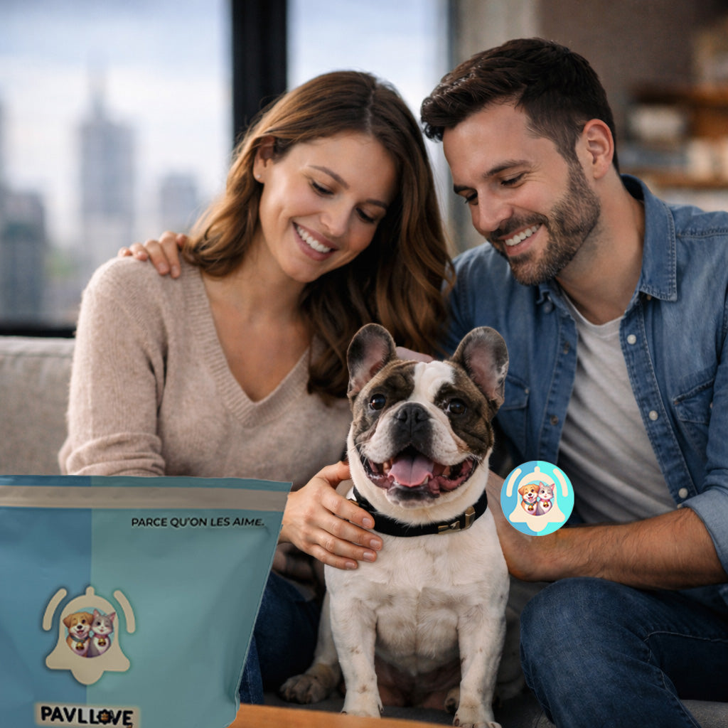 Parce qu'un chien bien nourri est un chien plus heureux, plus équilibré et en meilleure santé, chaque repas Pavllove est un geste d'amour durable .