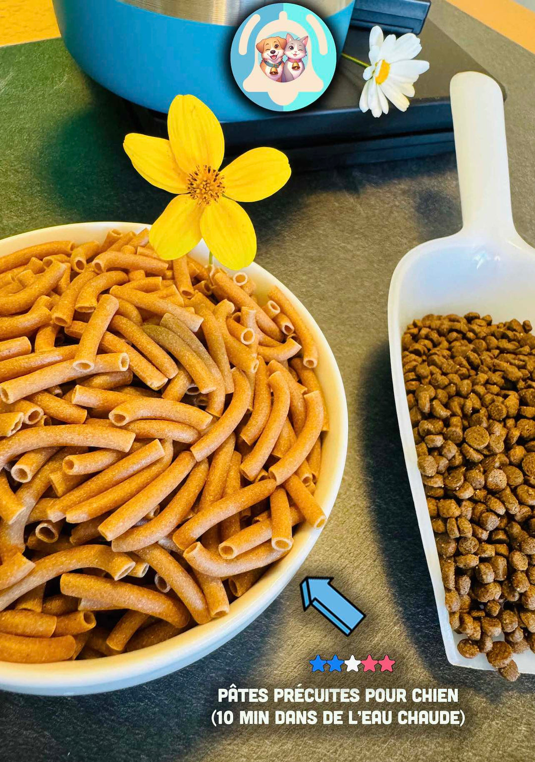 Prêtes en 10-12 minutes, nos pâtes précuites sont idéales pour les propriétaires de chiens occupés. Il vous suffit de les mettre dans l'eau chaude (12 min) et de les égoutter et les mélanger avec la nourriture habituelle de votre chien pour un repas savoureux et nutritif.